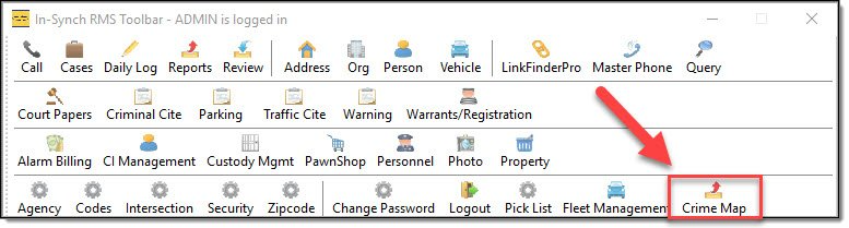 *The Crime Map module is not on the In-Synch RMS Toolbar by default.