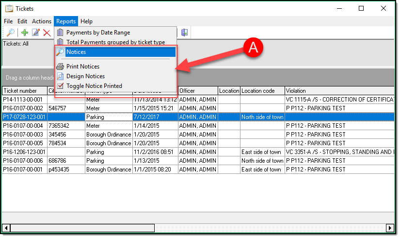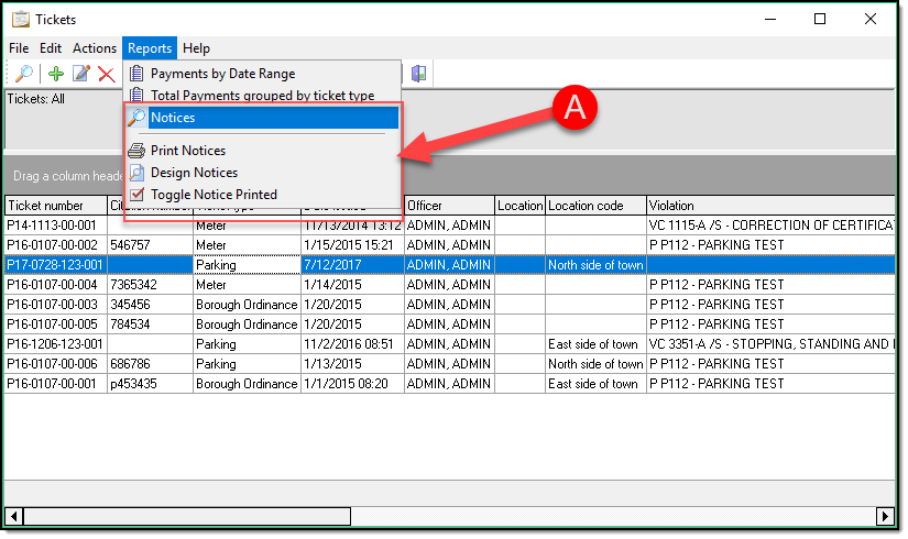 You can create and send late notices for tickets that are older than the number of days specified in the Agency Setup Module.