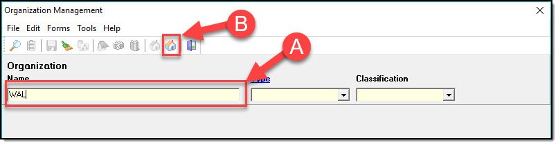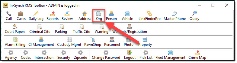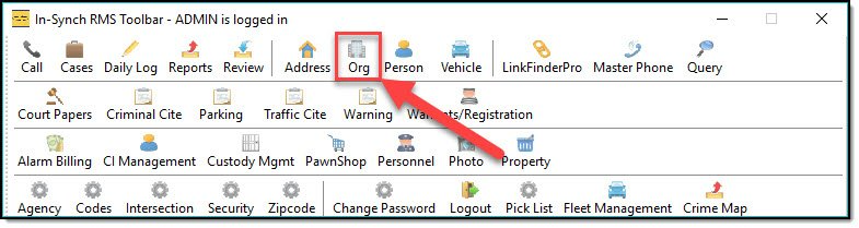 1. Open the Organization by clicking on the Org button on the main RMS toolbar.