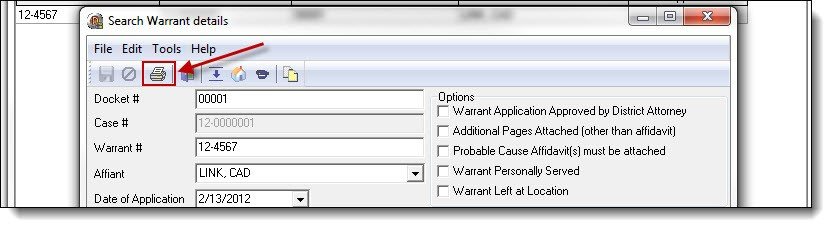 1. To preview the newly created search warrant, click the “Print Warrant” button from the top of the Search Warrant details window.