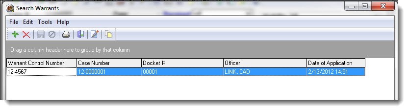 2. Existing warrants are displayed in the window. Users can view, edit, and print the existing warrants as well as create new warrants from the search warrants grid.