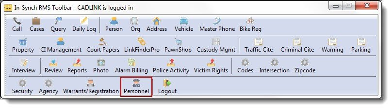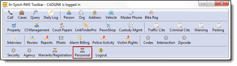 1. Click the “Personnel” button to open Personnel Management from the main RMS toolbar.