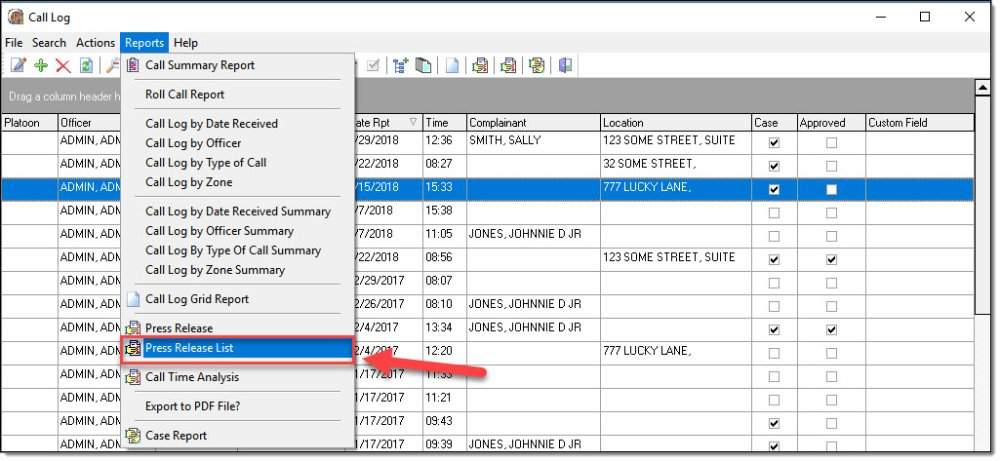 1. To preview this report, select the “Press Release List” option found under the “Reports” drop down list in the Call Log module.