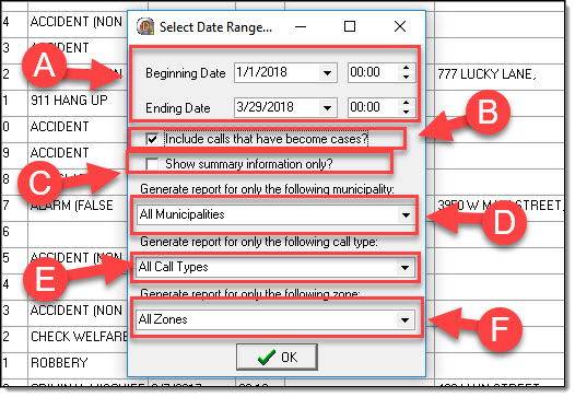- Call Type (E) – All Call Types (Default) / Or select an individual Call Type