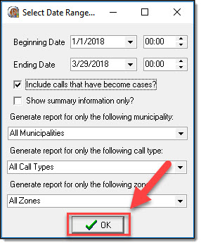 3. Once the desired parameters have been set, select the “OK” button to preview the report.