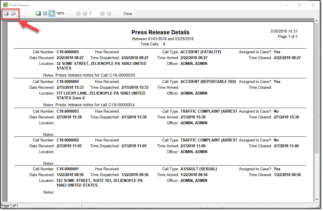 - Include calls that have become cases? (B) – Unchecked displays press release information only for calls that have not become cases / Checked displays press release information for all calls
