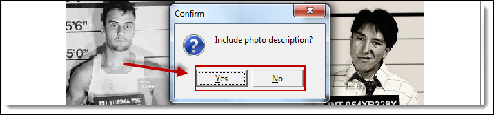 2. Choose whether or not to include the photo descriptions on the photo lineup. Clicking “Yes” will include the descriptions. This could be useful if the lineup is for internal use only. Clicking “No” will not include the descriptions with the photos. This is the more common practice and will be used in this example.