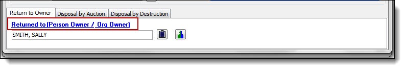 Clicking “Person Owner” will open a Person Management search; clicking “Org Owner” will open an Organization Management search. For additional details on searching or creating a new owner record, refer to the corresponding Person Management or Organization Management chapter. If an owner is already listed in the property details, the person or organization will auto-populate to the “Returned to” field