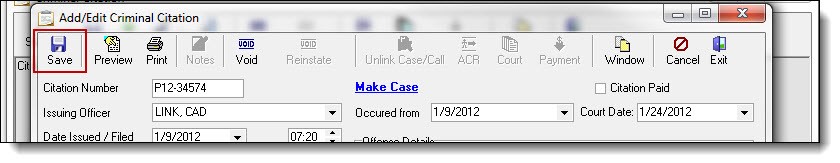 1. Click the “Save” button to save the changes to the citation.