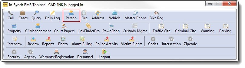 1. Click on the “Person” button from the main RMS toolbar to open Person Management.