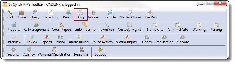 1. Click on the “Org” button from the main RMS toolbar to open Organization Management.