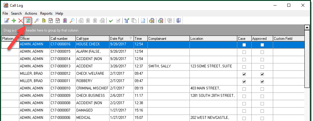 If you have had the Call Log open for an extended time it may be beneficial to do a call log refresh to ensure you have the most recent data. This can be done by clicking the refresh button on the main bar in the Call Log Grid.