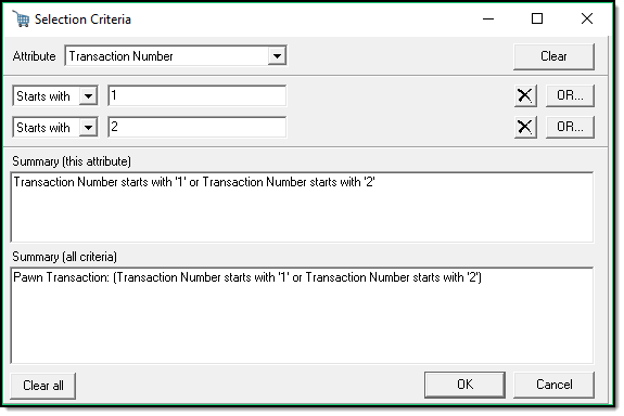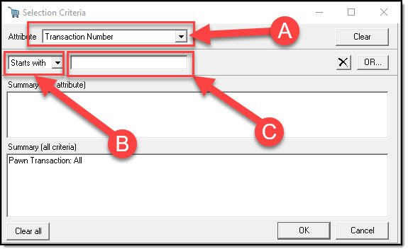 *Tips:- If you do not select any criteria, the system will search for all entered pawn tickets.