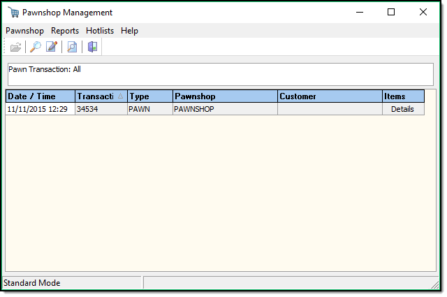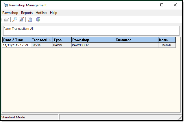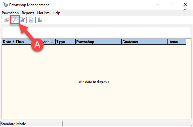 To search for a pawn ticket, press the Search button (A).