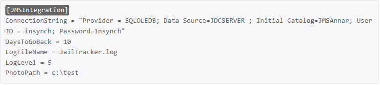 - InitialCatalog —> This is the name of Jailtrackers database. Jailtracker should provide this information.