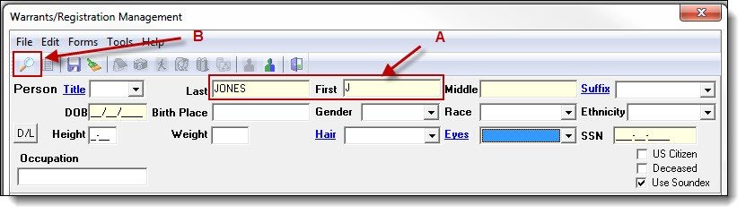 1. Click on the “Warrants and Registration” button from the main RMS toolbar.