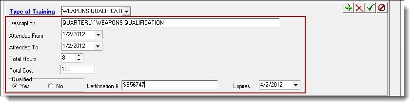 Multiple training types can be added to each personnel record. Follow steps 2-5 above for each training item.