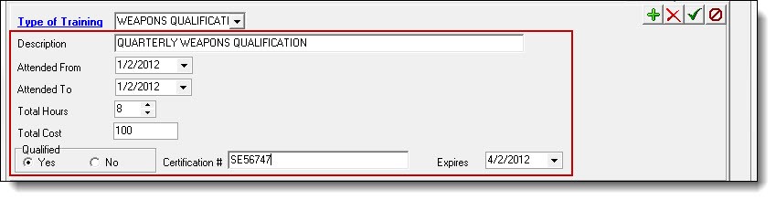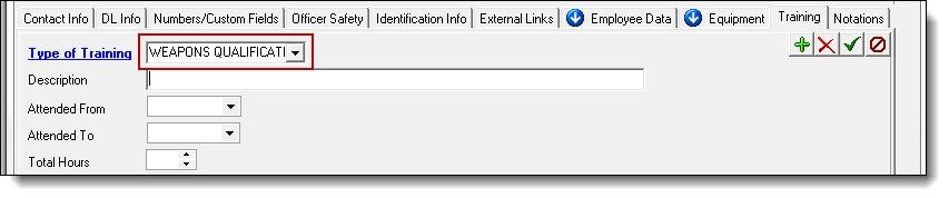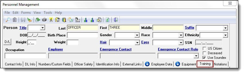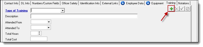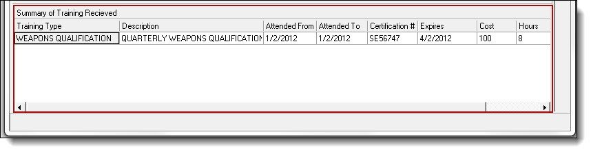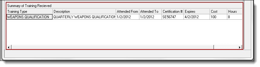 6. Training associated with the officer will be displayed in a grid at the bottom of the Training tab.