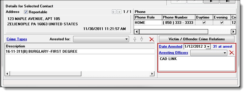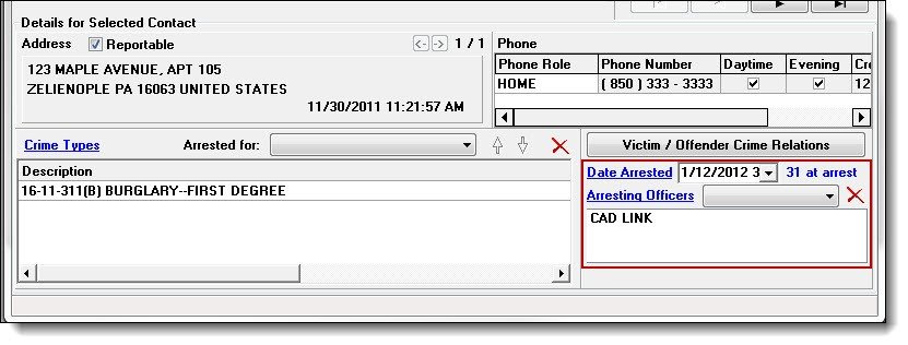 2. For any contact with the role or “Arrestee”, enter a date arrested and an arresting officer.
