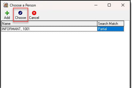 4. Click the “Choose” button from the Person Management window to add the contact to the case.