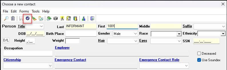 The informant number and the role of informant will display on the printed case report. There will be no Master Name Index entry for the person related to the informant number. The only way to gather information about an informant is through access to the CI Management module.