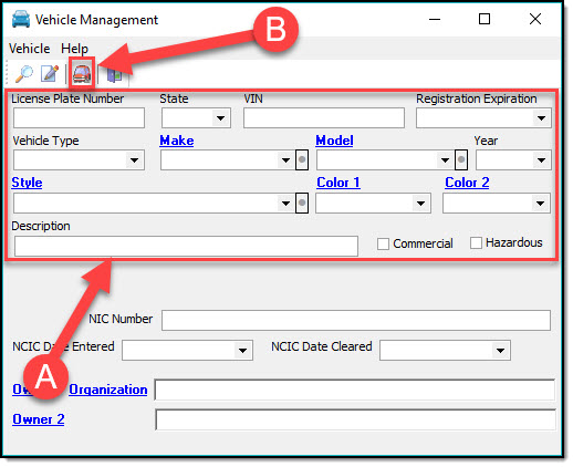 1. From the Main Toolbar, press the Vehicle button to launch Vehicle Management.
