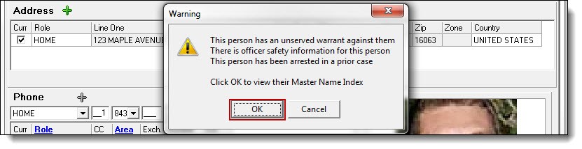 3. Click the “Ok” button to view the person’s Master Name Index.